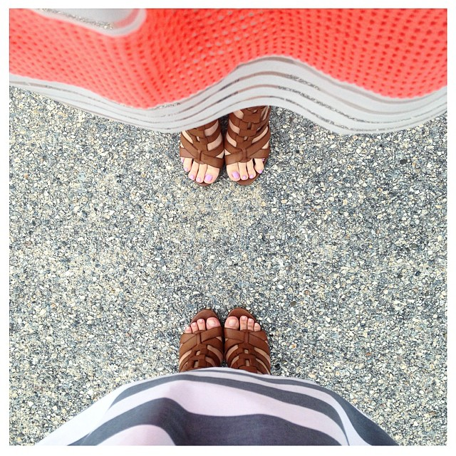 My BFF and I rocking the same pair of sandals from DSW. Click here to see this shot re-grammed on the official DSW Instagram page! So exciting!